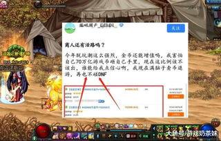 有一天,瓜贩在贴吧里发布了一个关于DNF游戏内购的瓜。他说:“最近,DNF游戏内购活动又来了,这次的活动力度非常大,玩家们千万不要错过!”这个瓜让很多玩家都表示:“原来还有这样的活动,我得赶紧去看看!”